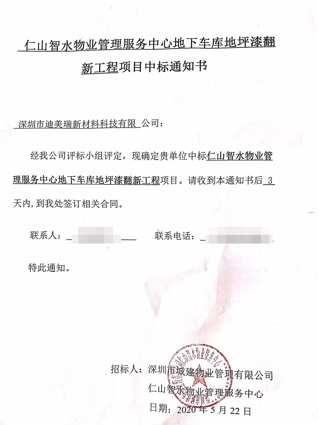 深圳市龍華仁山智水地下車庫翻新項目,5月22日,我司一舉拿下仁山智水物業小區地下車庫地坪翻新項目中標通知書。中標當天,迪美瑞投入地下車庫地坪翻新項目中,為了更好的建設小區業主的美好生活,項目施工時間僅用了一天的時間清理現場,安排好施工人員進場施工。貼封條、封鎖施工現場,提醒業主繞路而行。迪美瑞施工人員百分百的投入工作狀態。