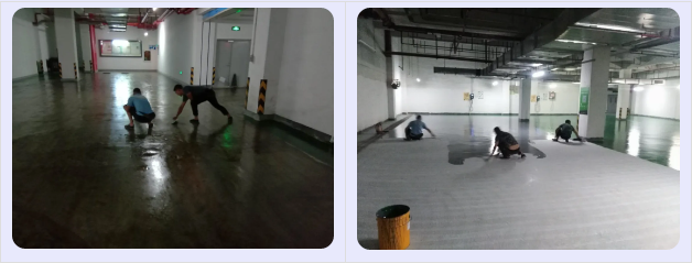 刮底漆-刮砂漿,填補不平整地面孔洞,把地面修復平整。開始環氧砂漿防滑耐磨地坪施工工藝。